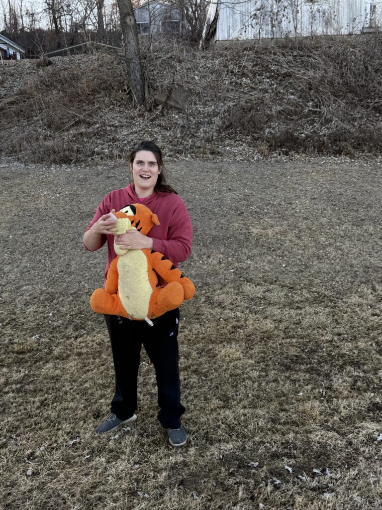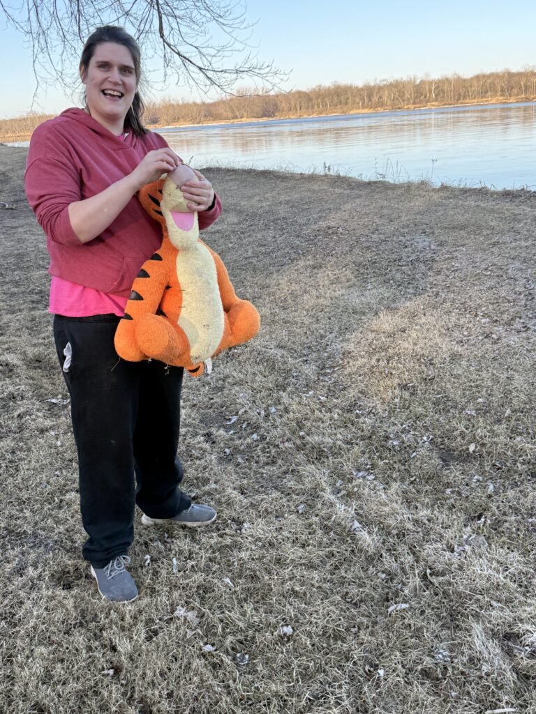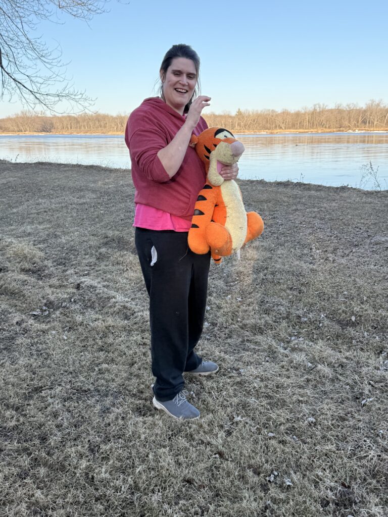 Michelle lives at our Hawthorn house. She went out one weekend, with her Tigger, and enjoyed the beautiful weather. She had a great time, walking by a creek and laughed a lot with her staff Leo on the walk.